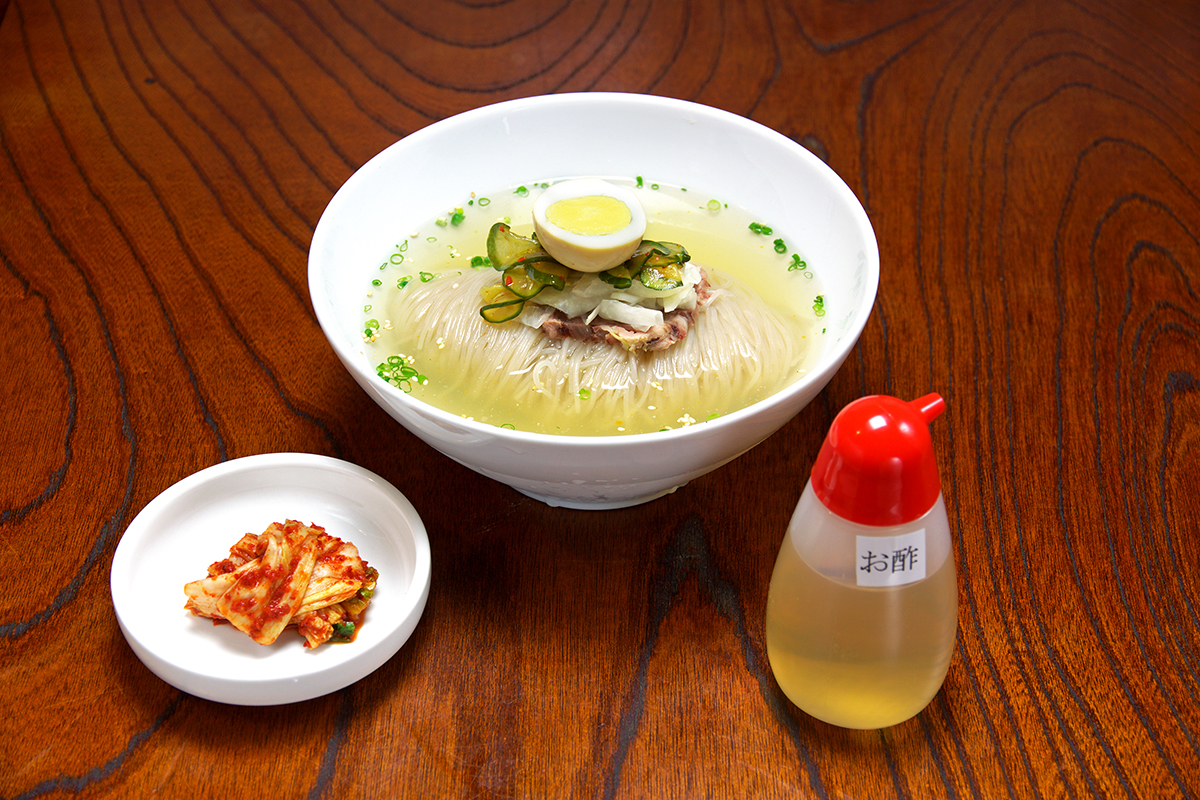 注文を受けてから手練りで作る平壌式冷麺と厚切りサムギョプサルが人気